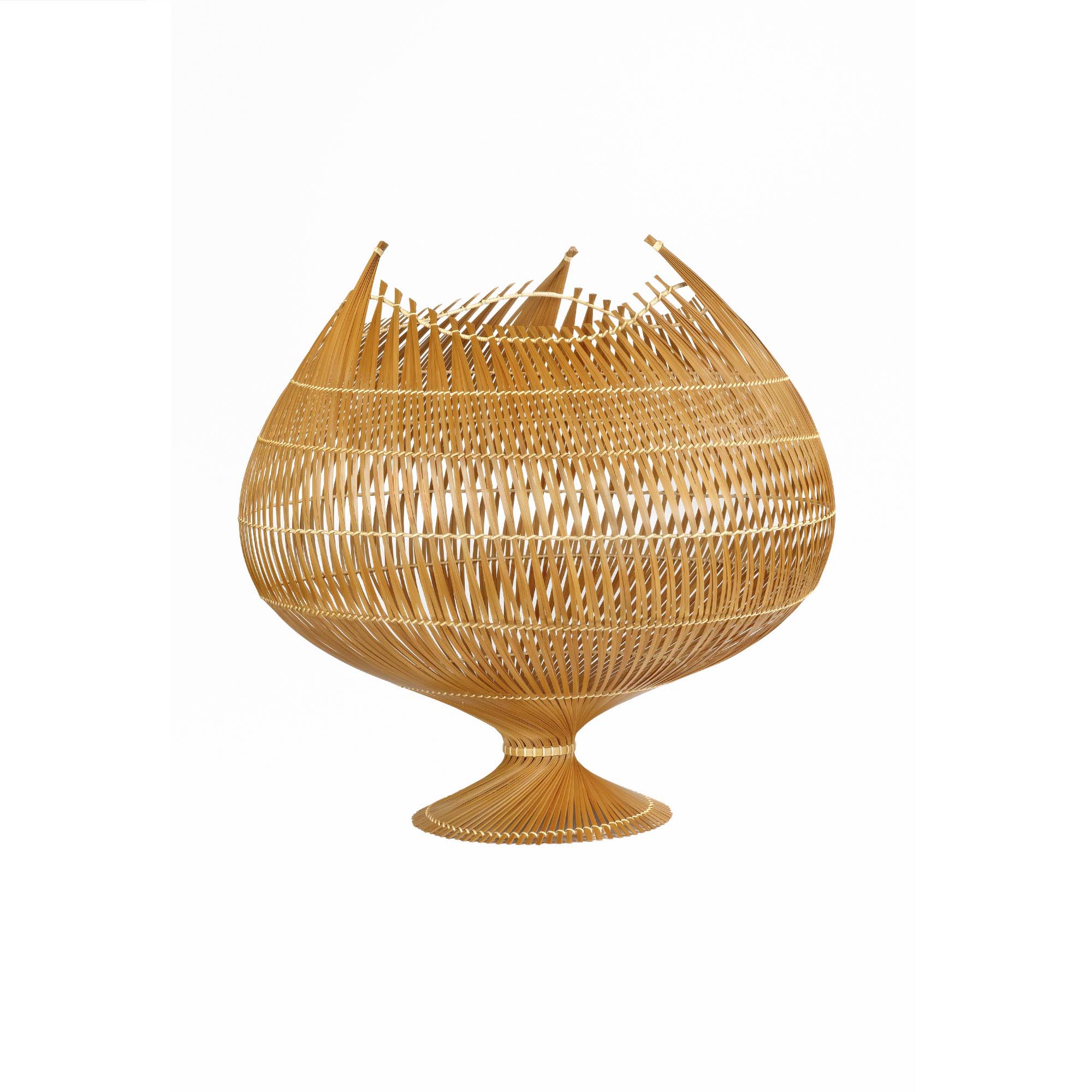 Originally from Tokyo, Kawashima Shigeo was still a young man when he moved to Kyushu and discovered the simplicity of bamboo - a simplicity which corresponded to a lifestyle he had dreamt of since his childhood. Once he had completed his education, he began a tortured relationship with this hollow stemmed grass. He was twenty-seven years old when a major change took place: working bamboo irritated him, but he said ".../... I realized that bamboo and I were inseparable. I could not leave it behind since it was already a part of me. One thing I remember is that I wanted no part of the process of preparing the bamboo for plaiting, which requires particularly meticulous attention. The fact that bamboo and I are in an indivisible relationship is the only reason for which I have not abandoned it. I really don't know how to manage the material, and I've wound up attaching bamboo to itself instead of weaving it."