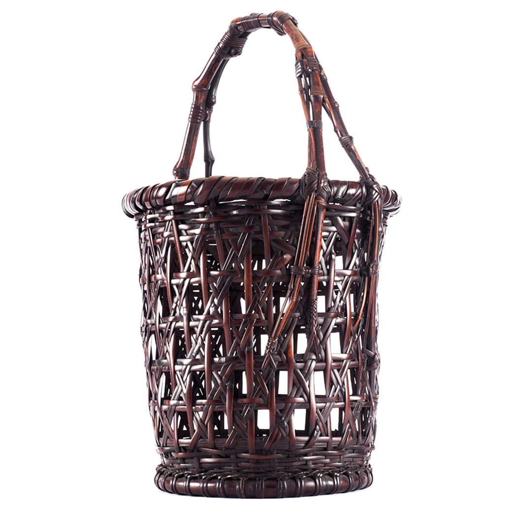 Maeda Chikubōsai II was born in the Hirai section of Sakai, where all of the Maeda clan lives. A late child, he was considered too young to train by his father and learned plaiting techniques from his father’s students instead. He began to receive some recognition for his work during the mid-1930s. After WW II, he showed in Osaka-area exhibitions and aspired to show creative work in Nitten.