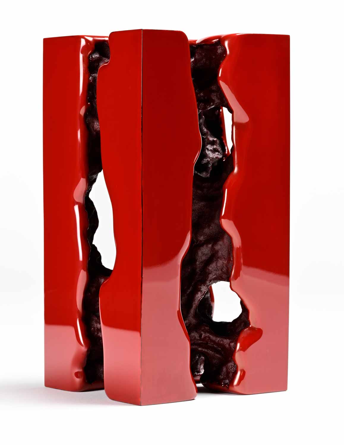 The intensity of deep red, achieved through dyeing and lacquer techniques, gives his works a vibrant aura and a unique sculptural presence. Through organic and dynamic forms, Yonezawa Jirō plays with light and space, creating pieces that evolve depending on the viewer’s perspective. His exceptional mastery of bamboo allows him to craft sculptures where strength and fluidity intertwine, making each piece both powerful and poetic.