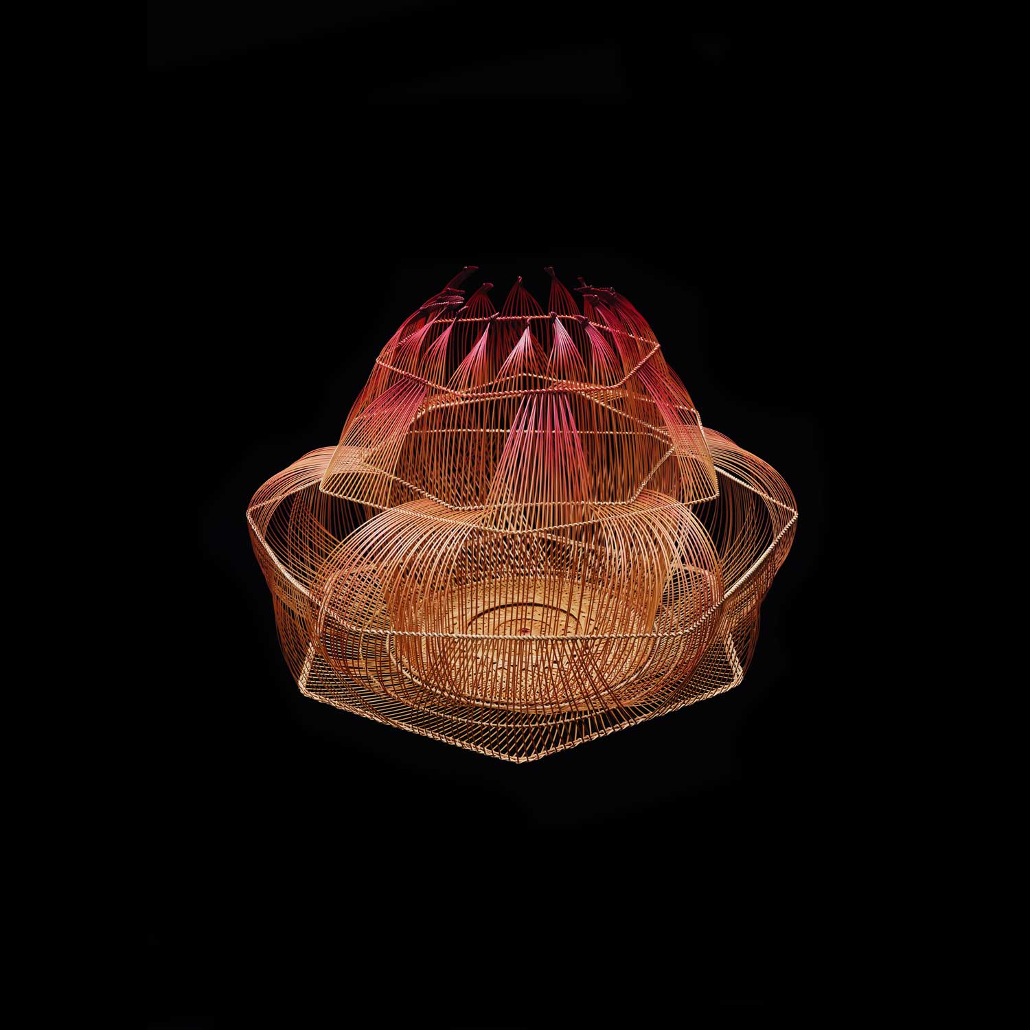 “I love solitary loop braiding and feel the cosmic order in this practice. I wanted to express that this world here and now is the Universe,” she explains to justify her artistic approach.