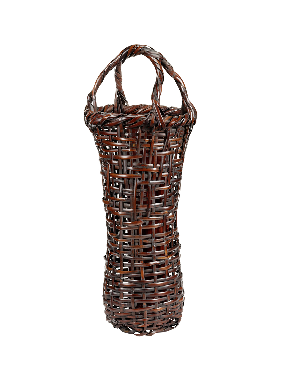 "Yoroi Hitsu Shiki" means "In the form of yoroi armour case".Signed "Chikuunsai zō kore [Chikuunsai made this]"Signed on the box (hakogaki) "ko-yadake yoroi-bitsu-shiki, hanakago" [Old arrow-bamboo, in the form of yoroi armour case]Kaifu Nansō, Chikuunsai zō kore with two seals “Ta tsune no in” [This is made by Chikuunsai, at the Kainansō Studio] with “The seal of Tanabe Tsuneo]”and “ChikuunsaiThe artist’s original given name: Tsuneo 常雄堺府南荘Kaifu Nansō “A House/ Studio Facing South” is a literal translation but the word might read “Minami no shō” which is an area in Sakai City, south of Osaka City.