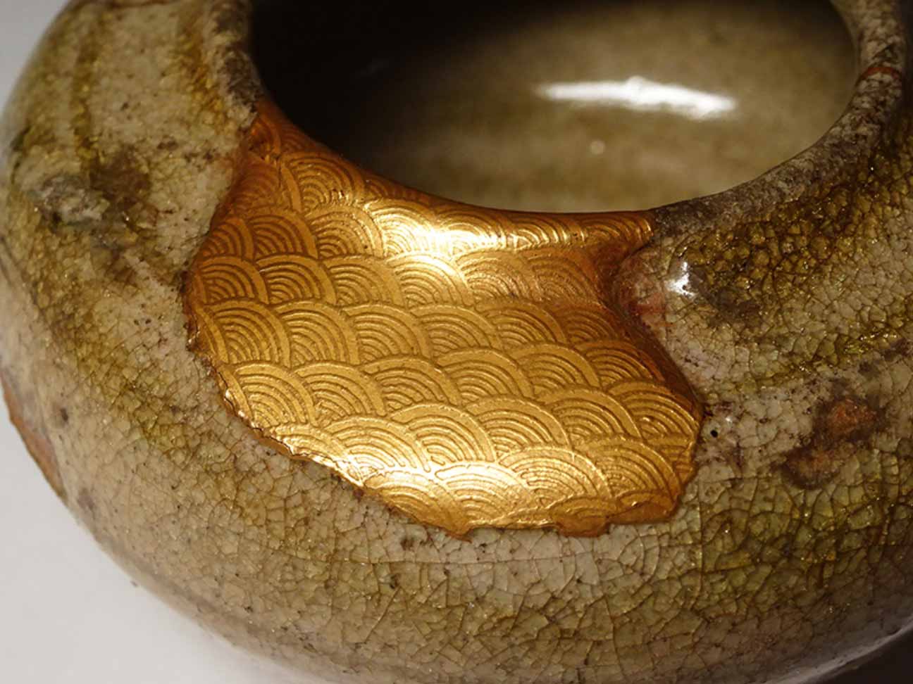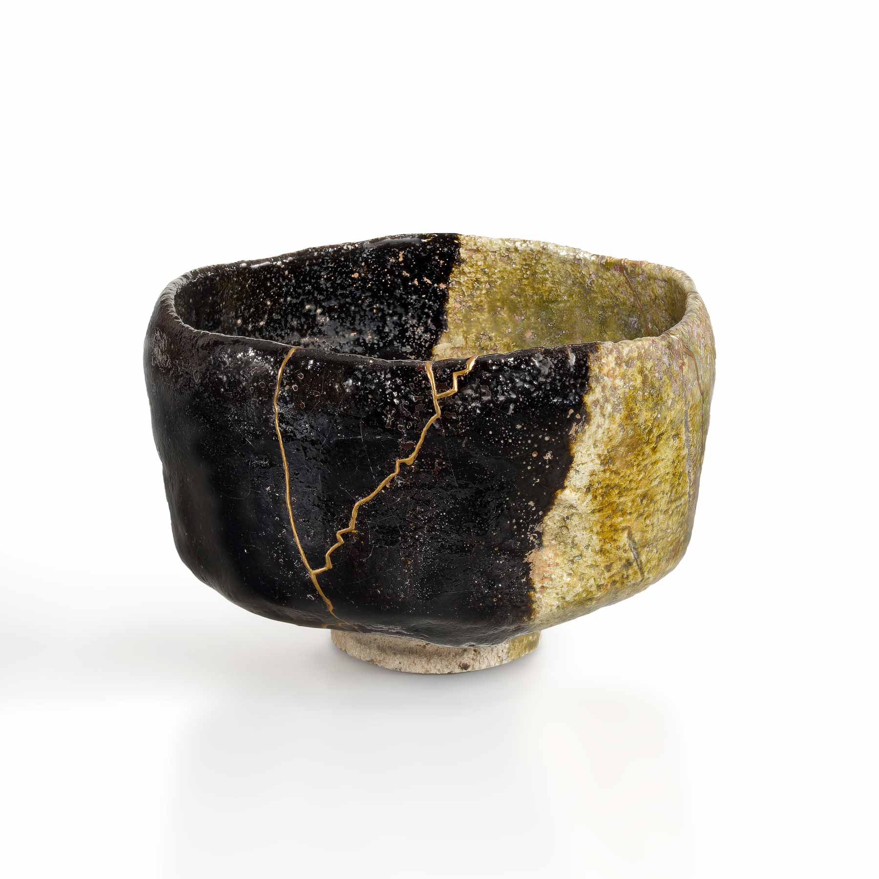 L'or brille à la fois sur les côtés noir et vert du chawan, à l'intérieur comme à l'extérieur.