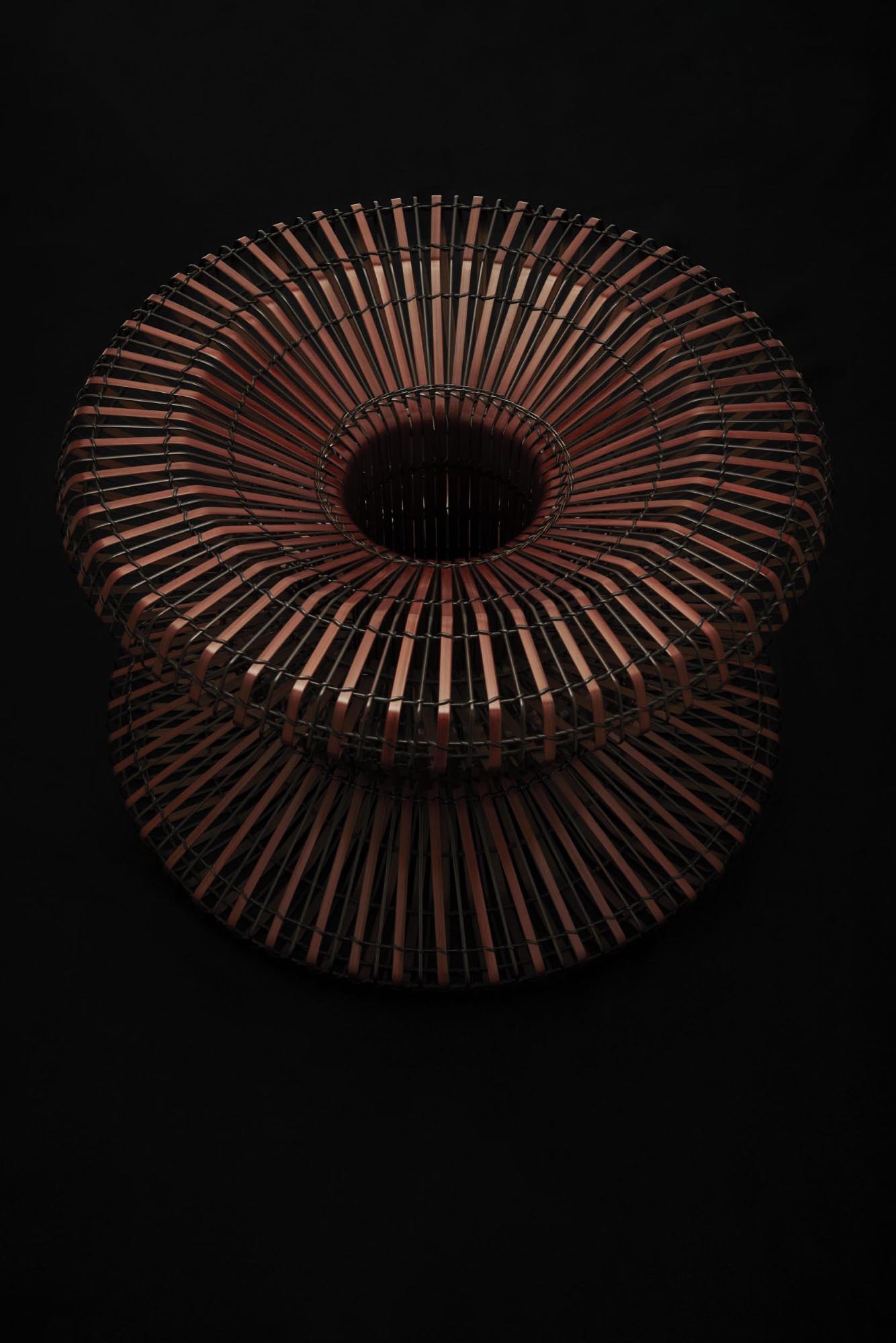 This young artist was initiated into the arts of wickerwork weaving at a very early age, learning first from his father, and then studying fine arts at the Osaka City Crafts High School (1991). He has a degree in sculpture from Tokyo Art University (1999), and is also a graduate of the Bamboo Arts Craft Center of Oita Prefecture (2001). His international activities distinguish him from other bamboo artists. He has been an ambassador for Japanese wickerwork and has shown and given demonstrations all over the world, including in Australia, Korea, the Netherlands, New Zealand, the United States, Switzerland, France, Belgium, Russia, Finland, and Brazil.