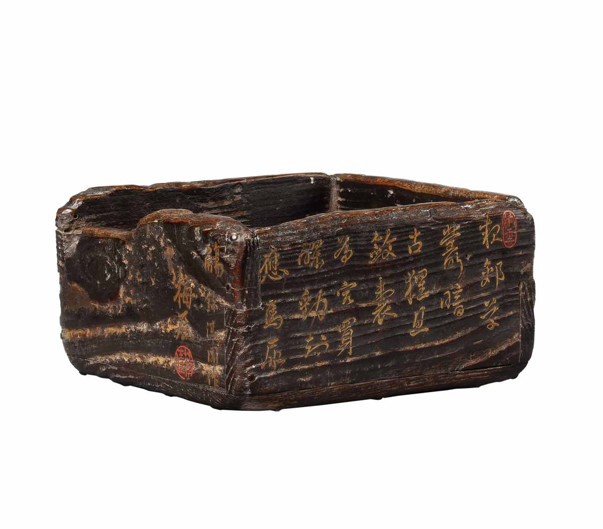 “Symphony of Red and Black, Beauty of Negoro. Number 91. Negoro heishi, one item, maximum height 32.4 cm, Muromachi Period (15-16th century), inscribed with “Kanbun 12th year” which indicates that it was the year when the object was later restored, a private collection]