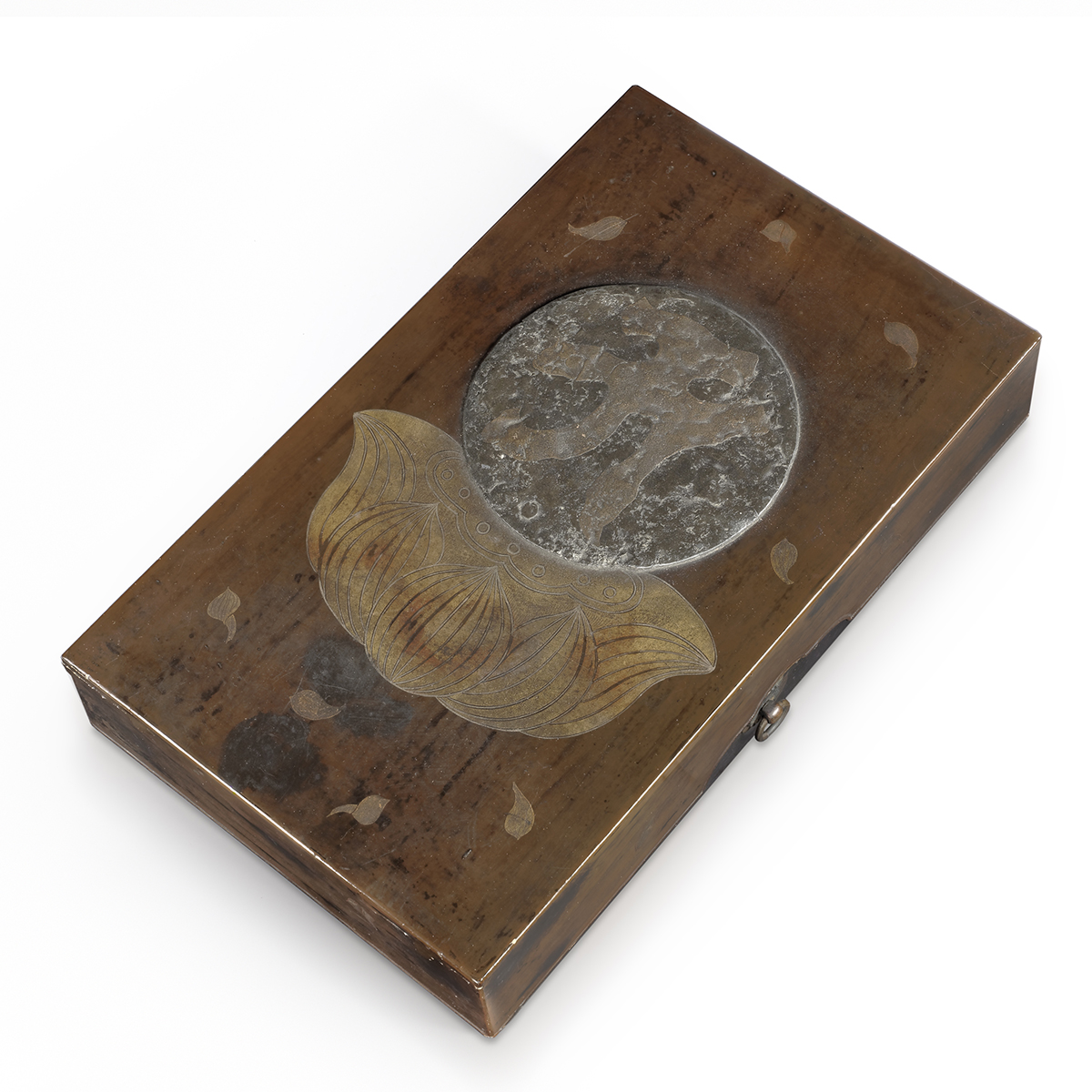 The bonji of the sutra box is the letter « A » in ancient indian writing, siddham. It is the first lettre of the alphabet, and so represents the origin of everything. But most of all, in sanskrit, « A » has a deprivation sense, just as the deprivative « A » in Greek. It symbolizes the buddhist conception whereby every existing thing is originally « unborn » (Honpushô 本不生.sanscrit : âdyanutpâda).