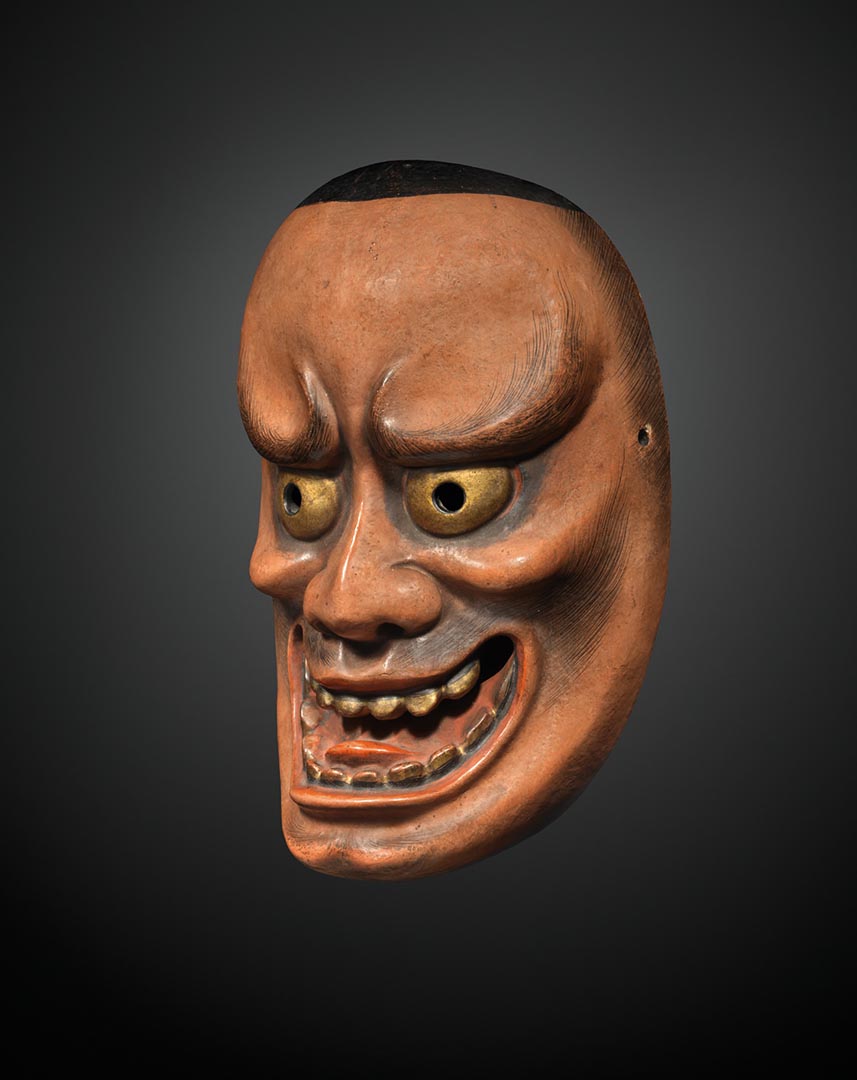 A nō mask representing a dragon god which is believed to live in the sea and have the power to bring rain.