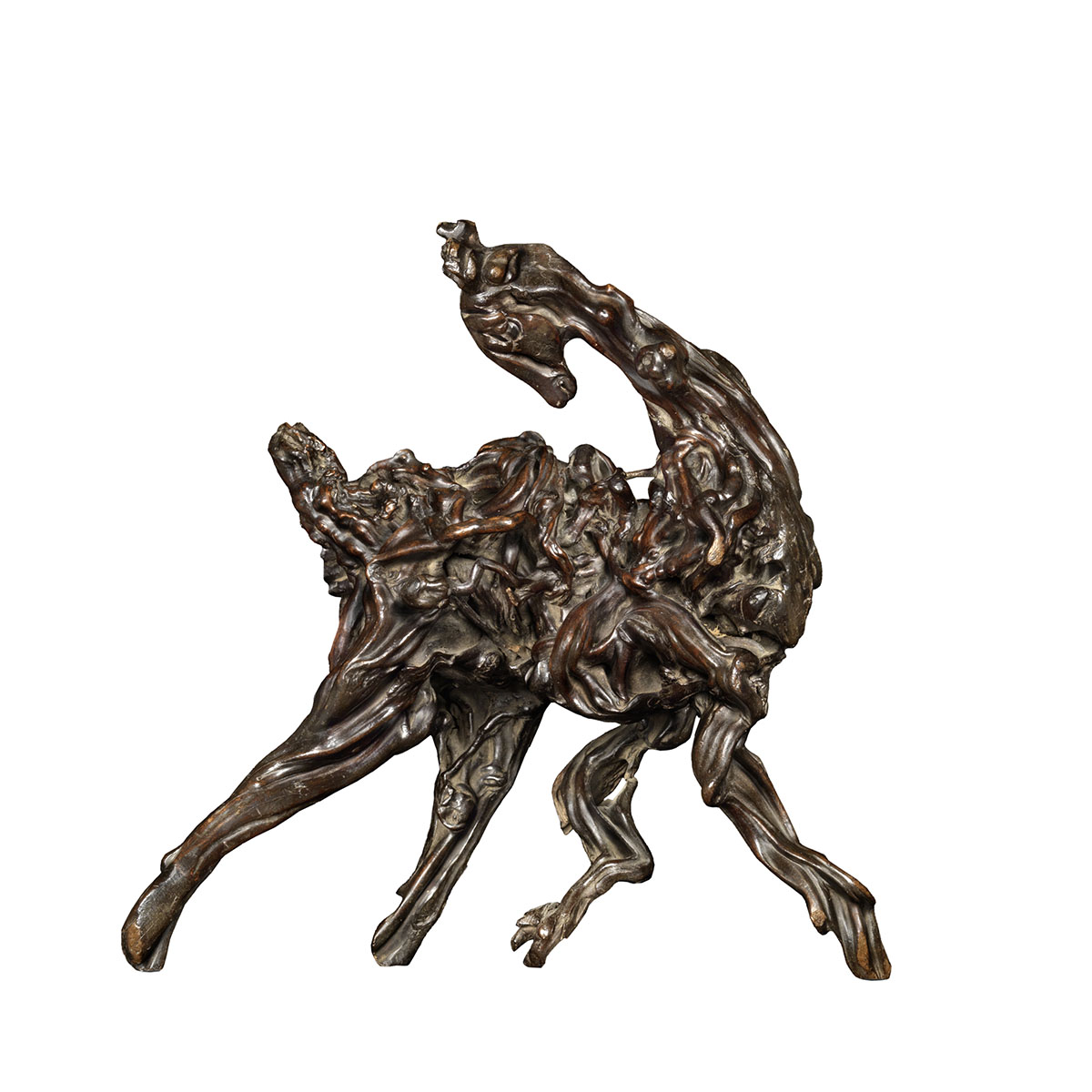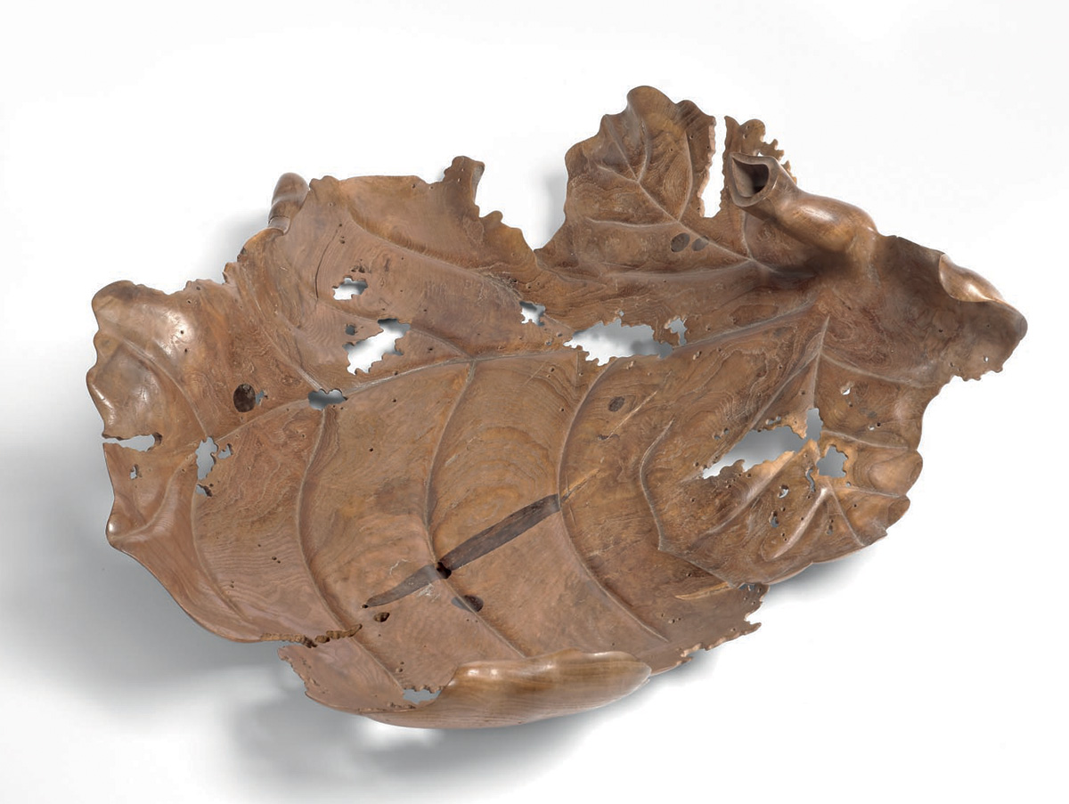 A remarkable naturalistic study in which the artist uses the crevices of the wood to suggest the tearing of the leaf eaten in places by insects.