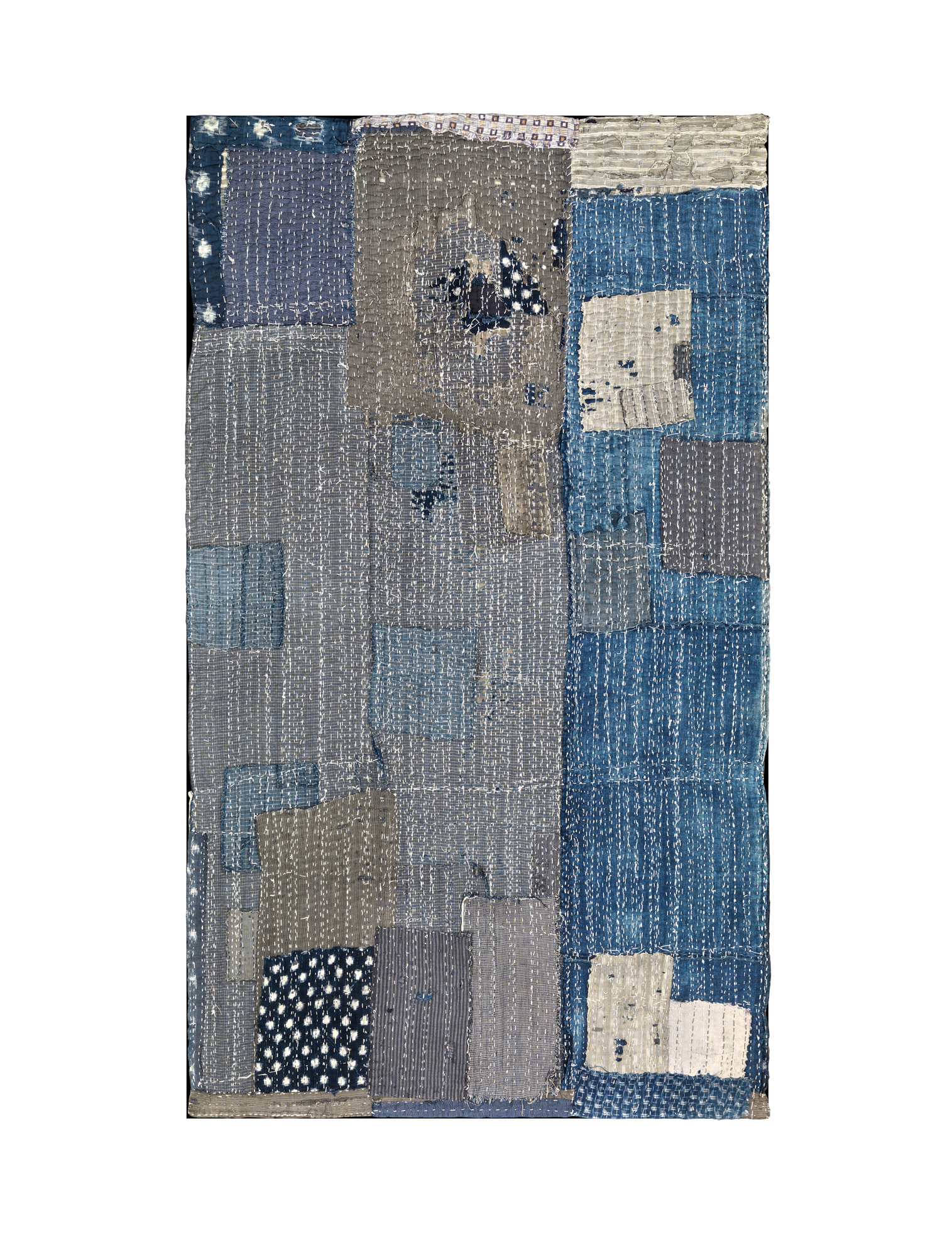 The diversity of patches is a veritable encyclopedia of hand loomed cotton indigo from old Japan.