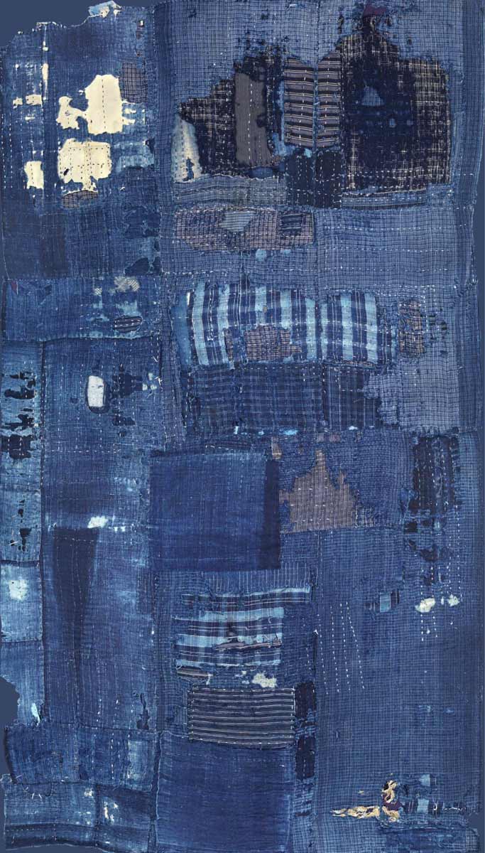 The diversity of patches is a veritable encyclopedia of hand loomed cotton indigo from old Japan.